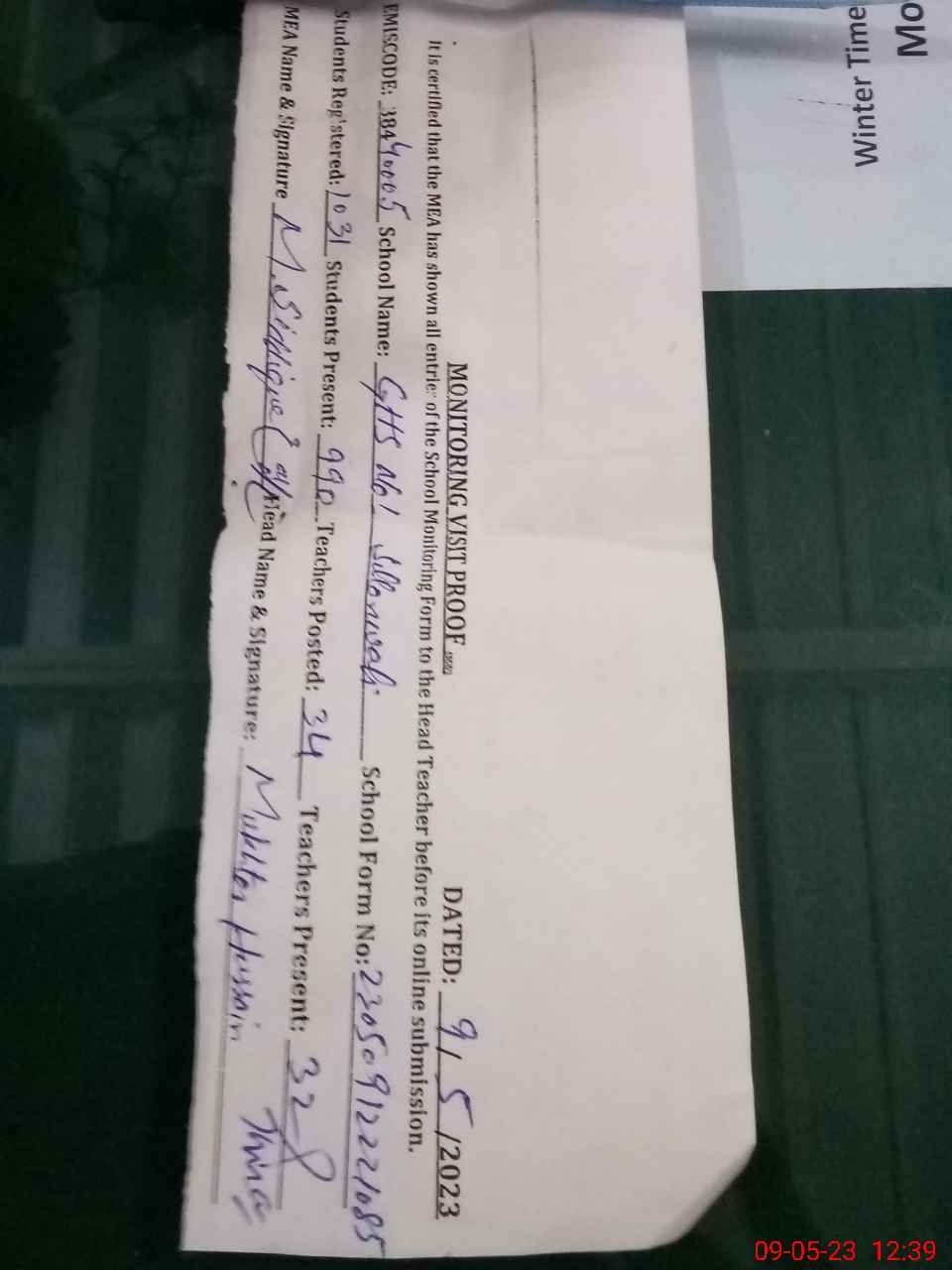 | EMIS Code: 38440005 | Name of School: GHS NO.1 SILLANWALI | |||