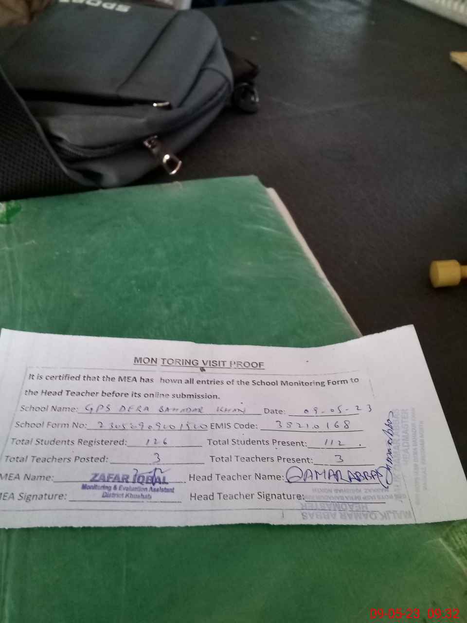 | Attendance Register | Head Teacher | MEA with School | Visit Proof |