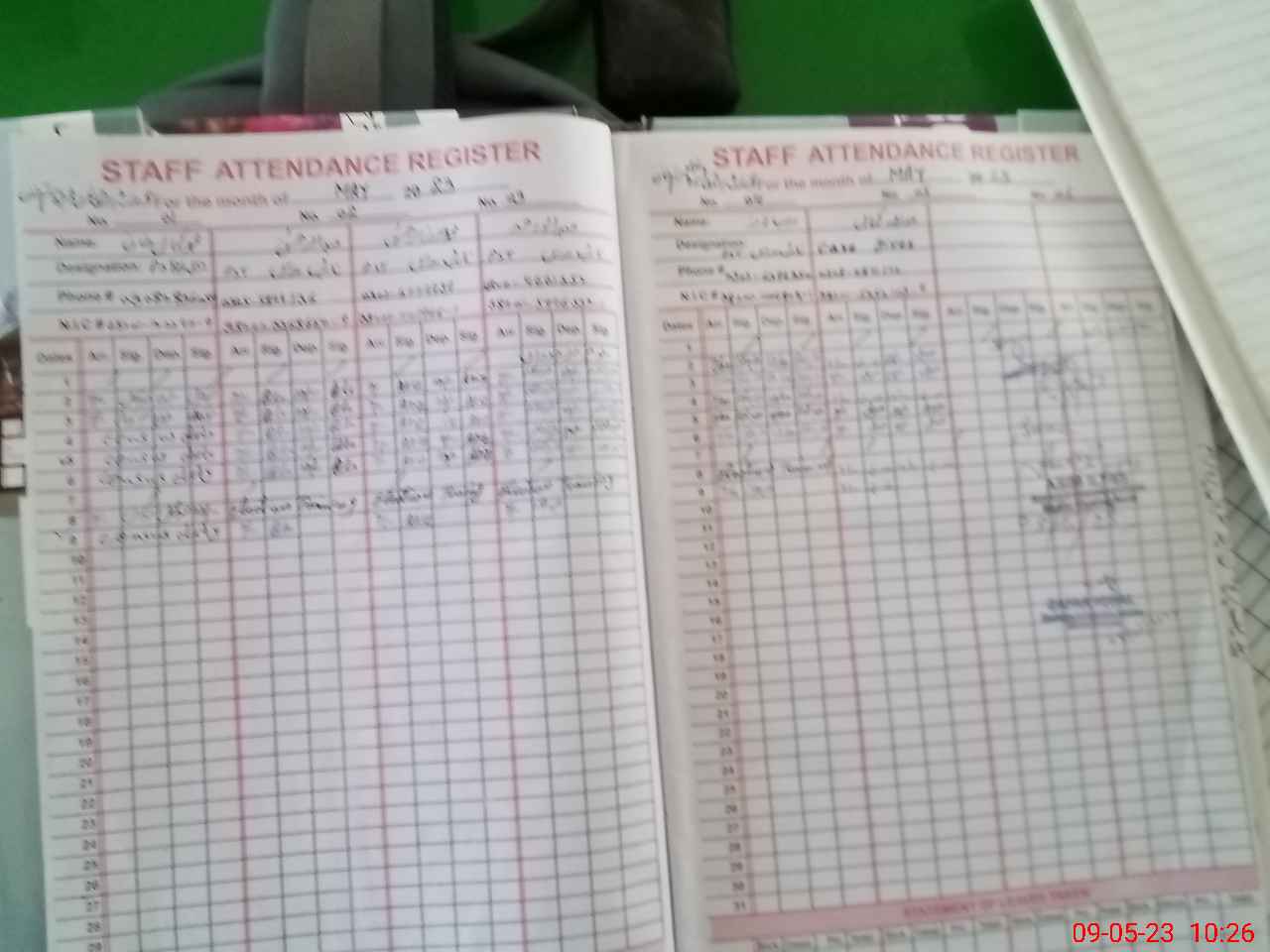 | CNIC | Full Name | Designation | R/C | Absence During Last Calender Month |