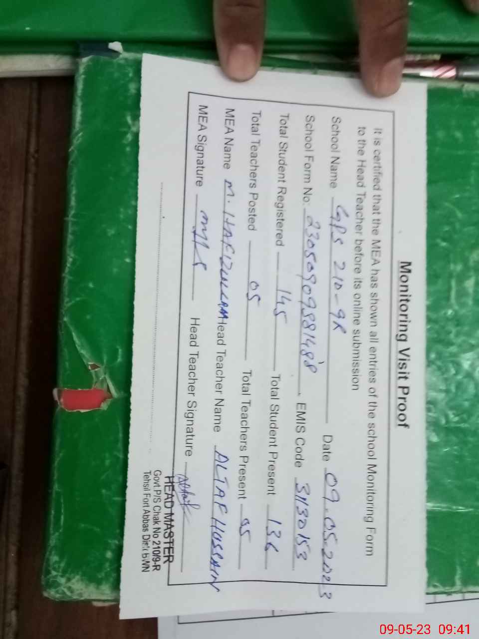 | EMIS Code: 31130153 | Name of School: GPS CHAK NO.210/9-R | |||