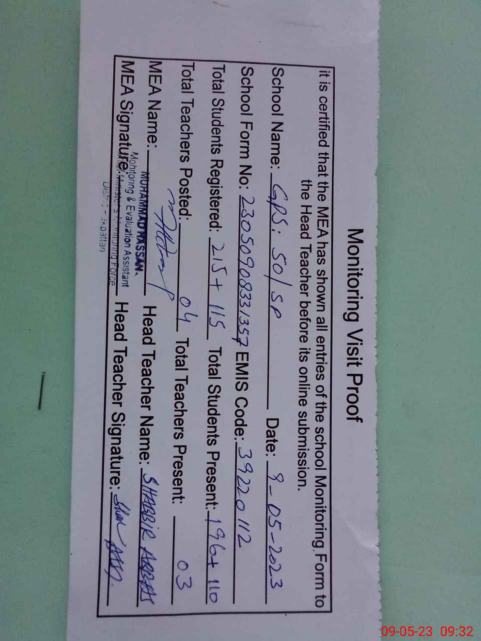 | EMIS Code: 39220112 | Name of School: GPS 50 SP | |||