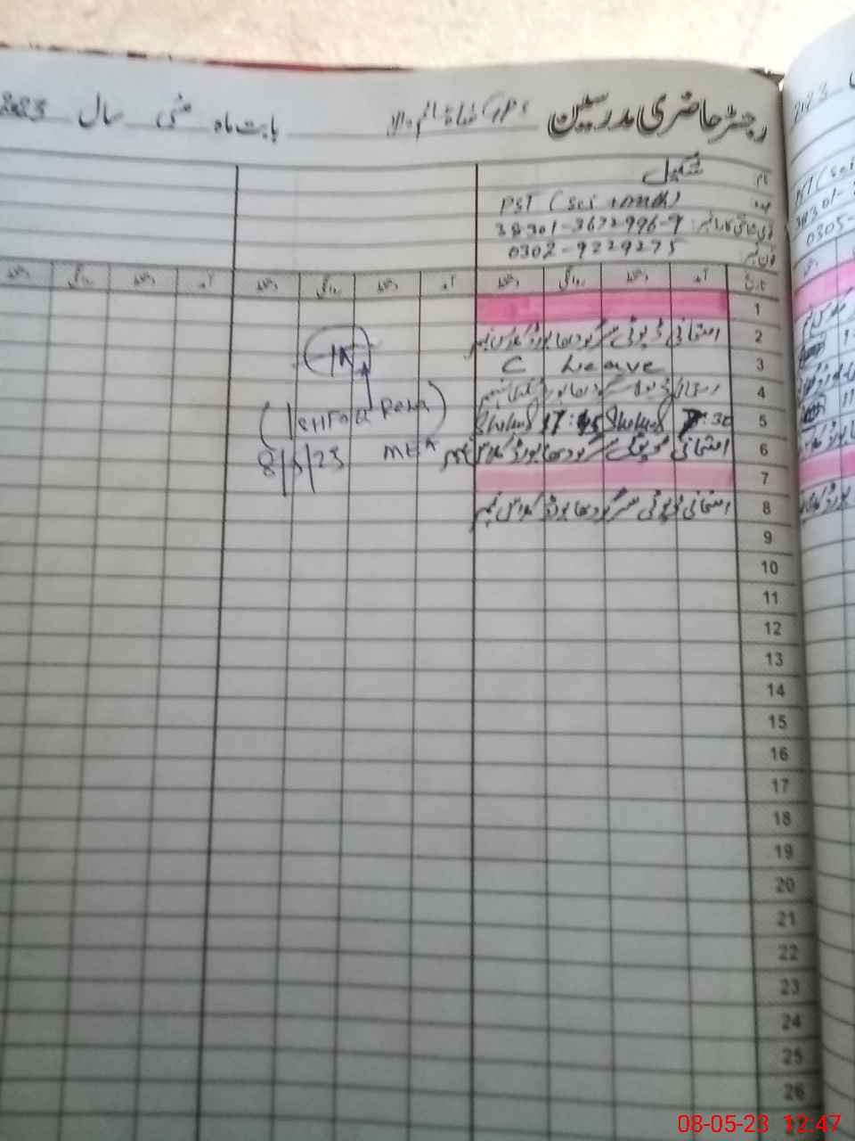 | Name: Am**** Na**** Kh**** Designation: (School Headmaster's/Headmistress's) PST/PTC/JV Phone/Cell Number: 03**** |