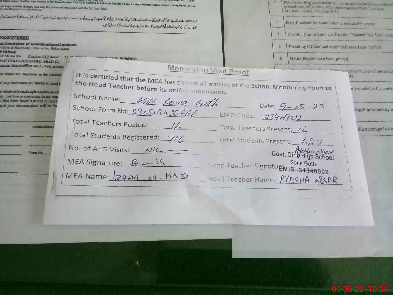 | EMIS Code: 31340902 | Name of School: GGHS SONA GOTH | |||