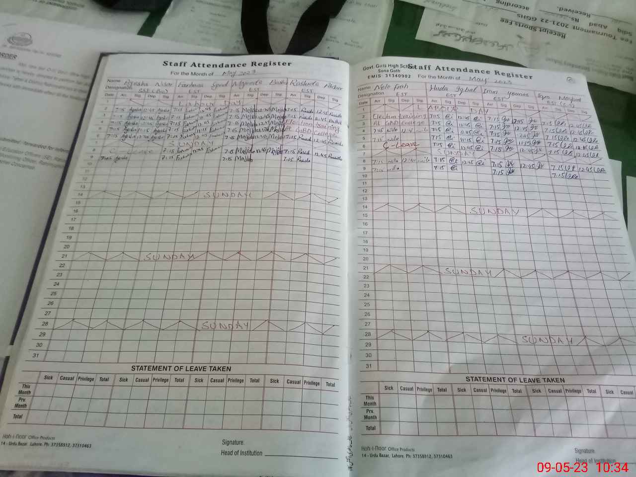 | Attendance Register | Head Teacher | MEA with School | Visit Proof |