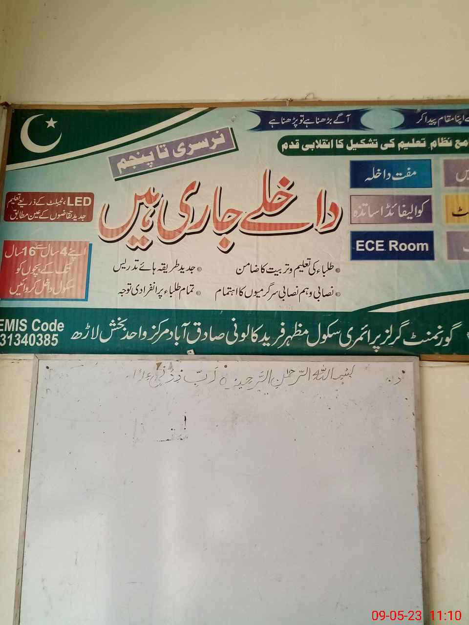 | EMIS Code: 31340385 | Name of School: GGPS MAZHAR FARID COLONY | |||