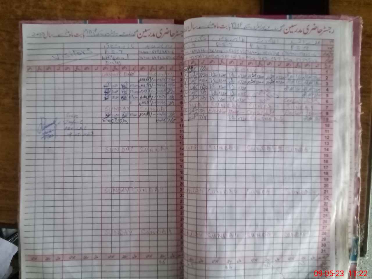 | CNIC | Full Name | Designation | R/C | Absence During Last Calender Month |