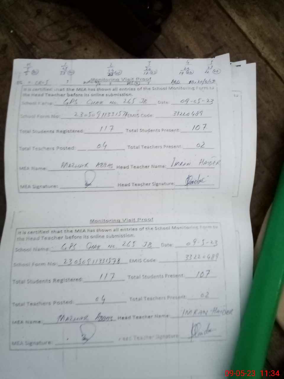 | Attendance Register | Head Teacher | MEA with School | Visit Proof |