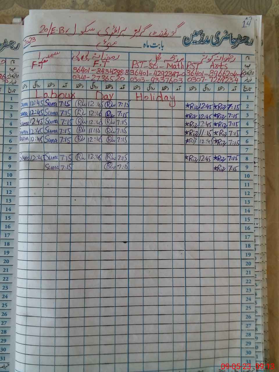 | Name: Sh**** Kh**** Designation: (School Headmaster's/Headmistress's) EST Phone/Cell Number: 03**** |