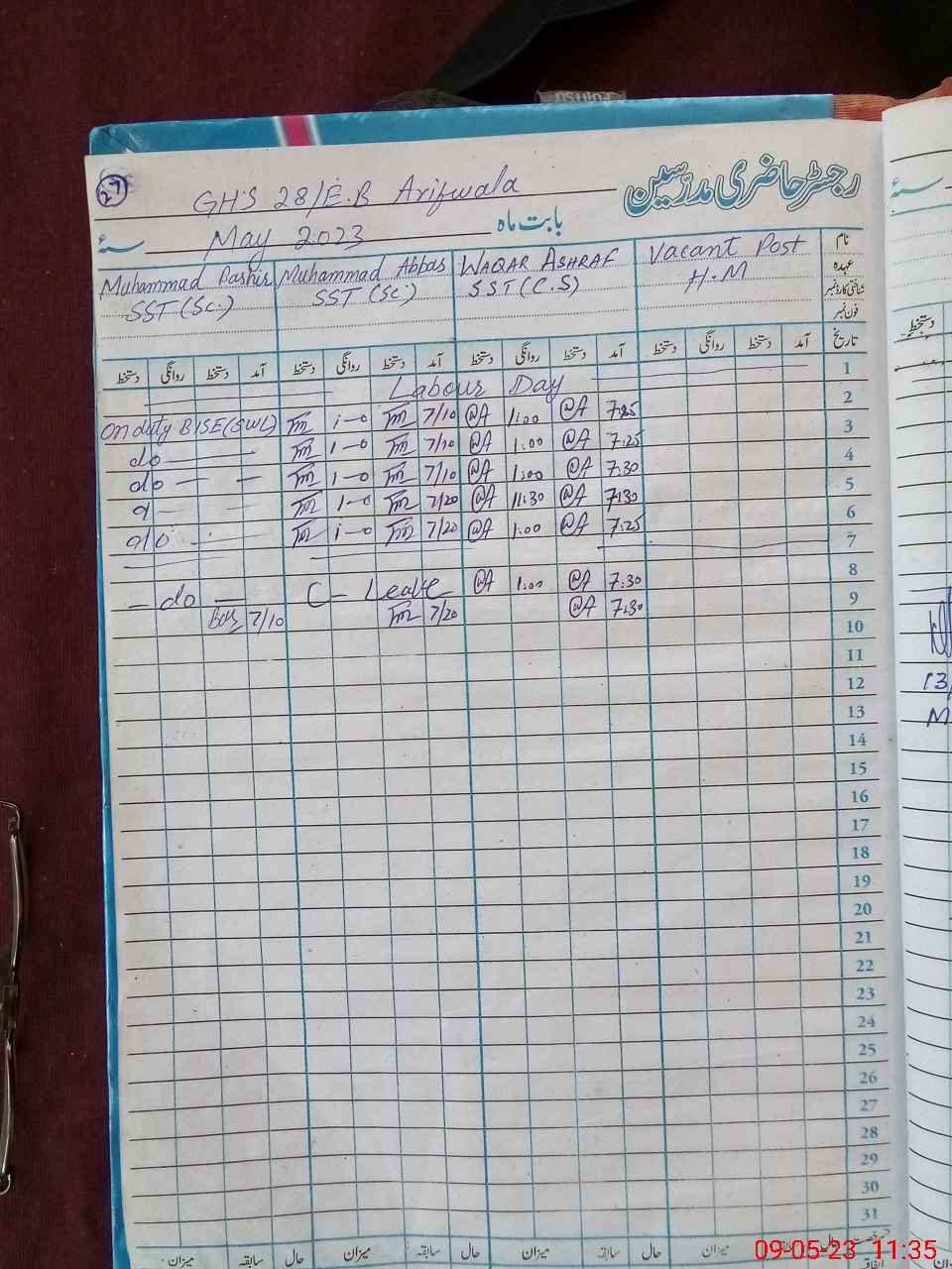 | 36**** | Mu**** Su**** | Regular | 0 | 17 | 0 | 0 | 0 | 0 | 0 | 0 | 0 | Exam Duty | |