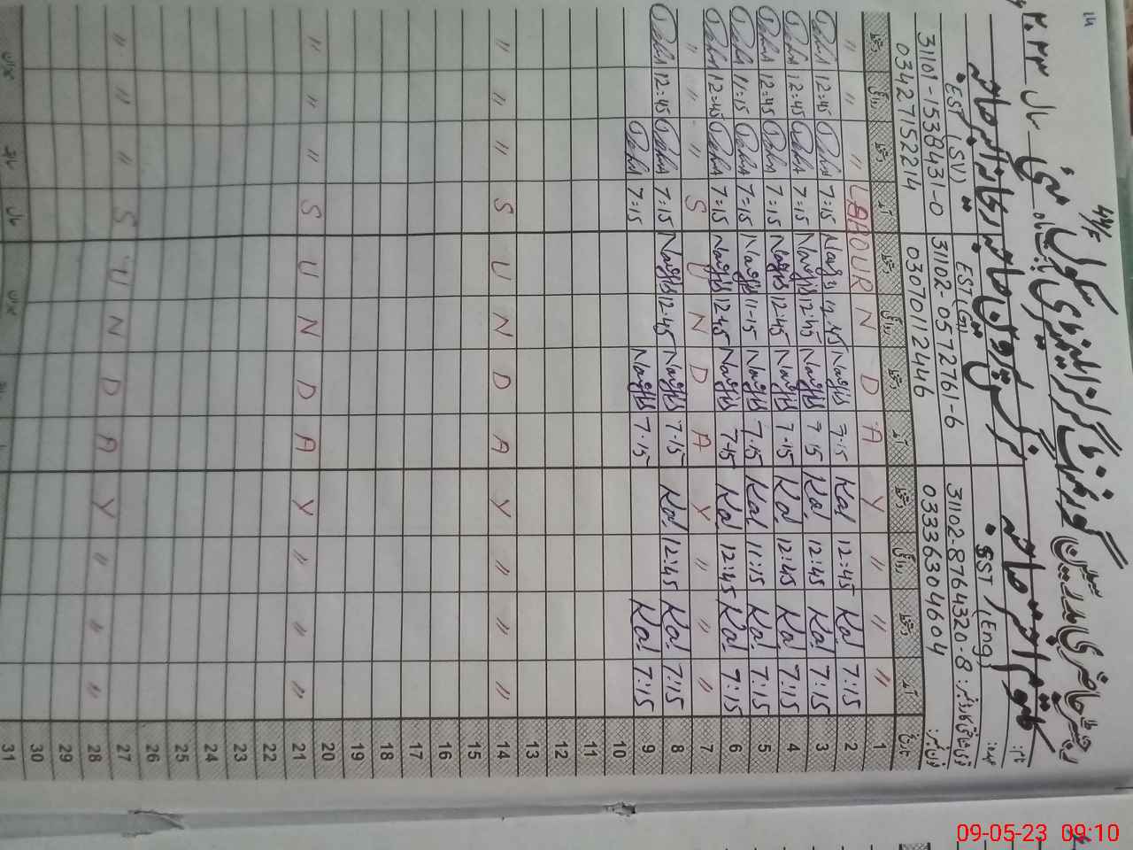 | CNIC | Full Name | Designation | R/C | Absence During Last Calender Month |