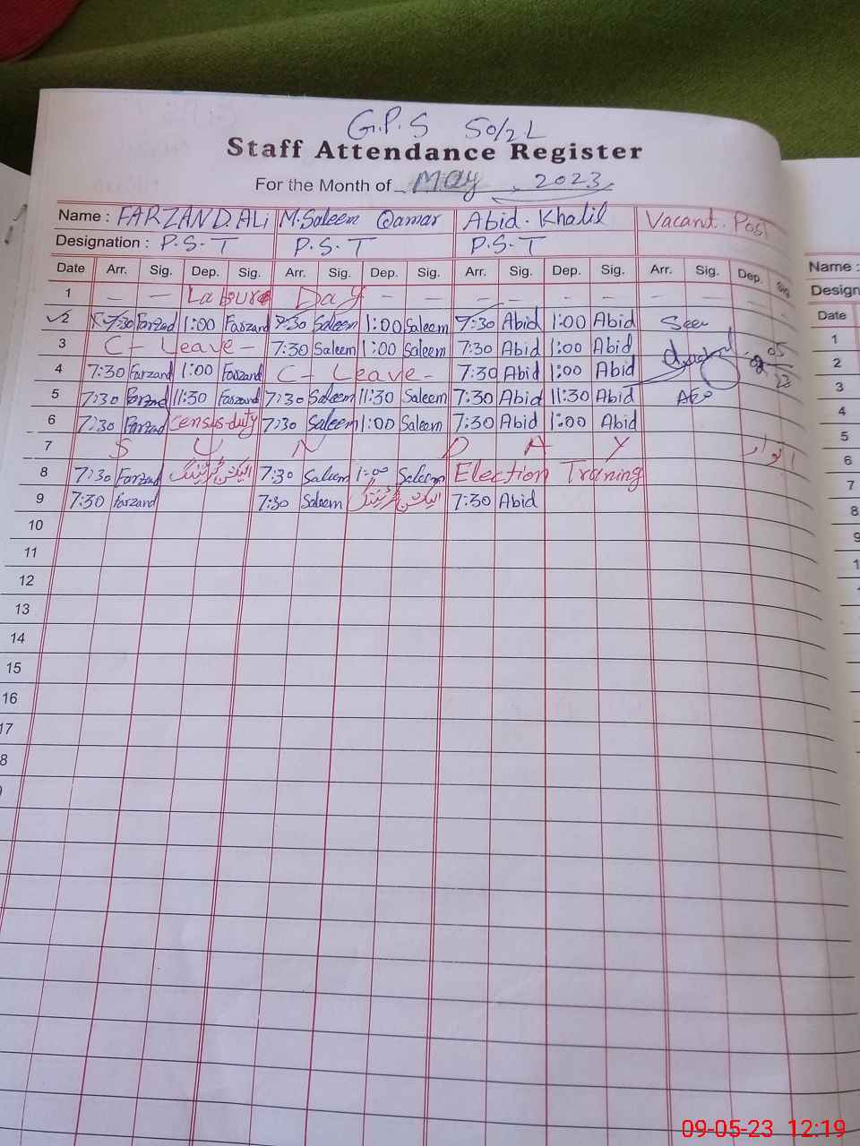 | CNIC | Full Name | Designation | R/C | Absence During Last Calender Month |