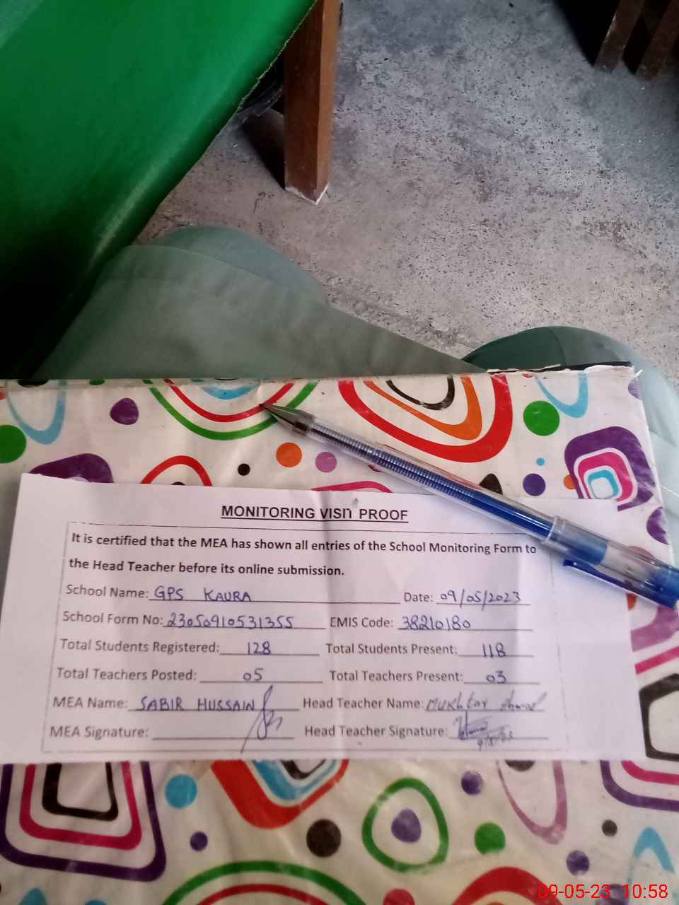 | Attendance Register | Head Teacher | MEA with School | Visit Proof |