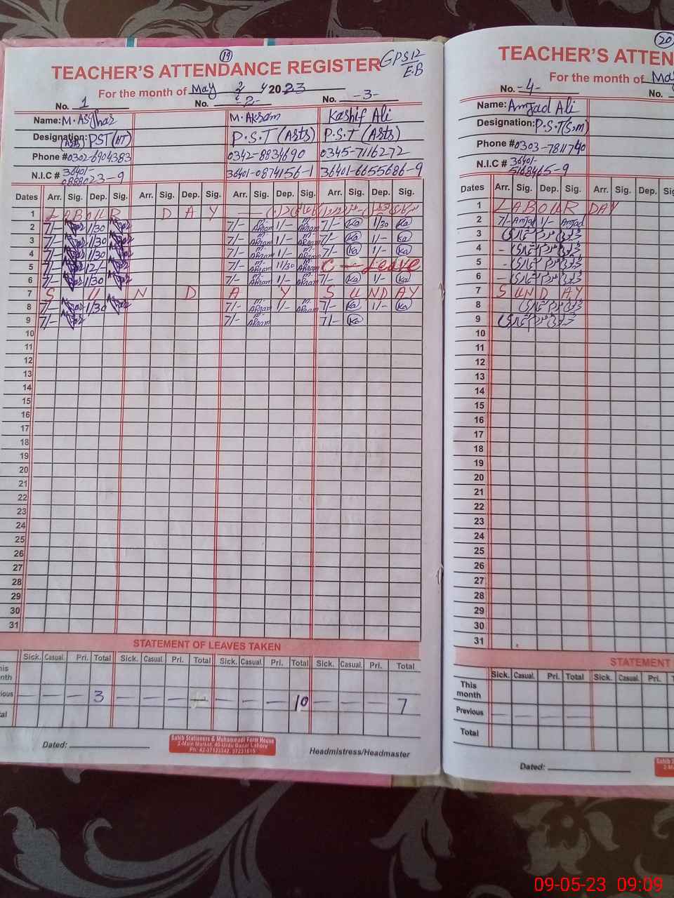 | Name: Ka**** Al**** Designation: (School Headmaster's/Headmistress's) PST Phone/Cell Number: 03**** |