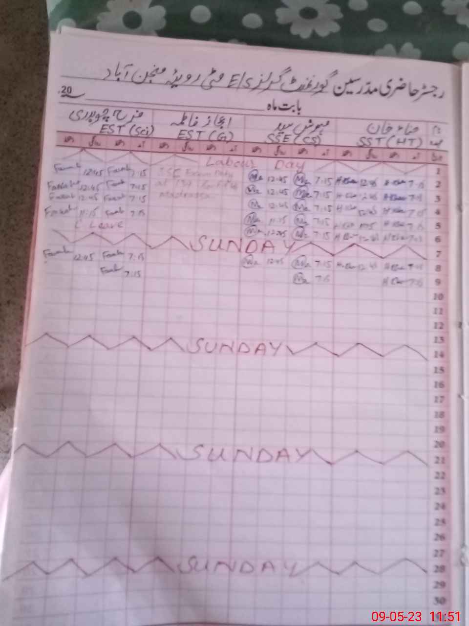 | 31**** | Za**** Bi**** | NAIB QASID | Regular | 1 | 0 | 0 | 0 | 0 | 0 | 0 | 0 | 1 | Casual |