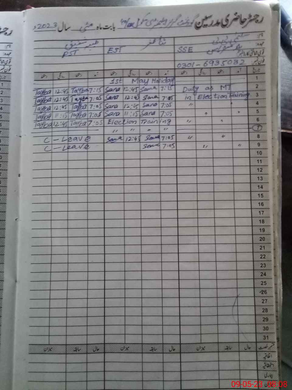 | Name: SA**** ZA**** Designation: (School Headmaster's/Headmistress's) EST (SCI) Phone/Cell Number: 03**** |