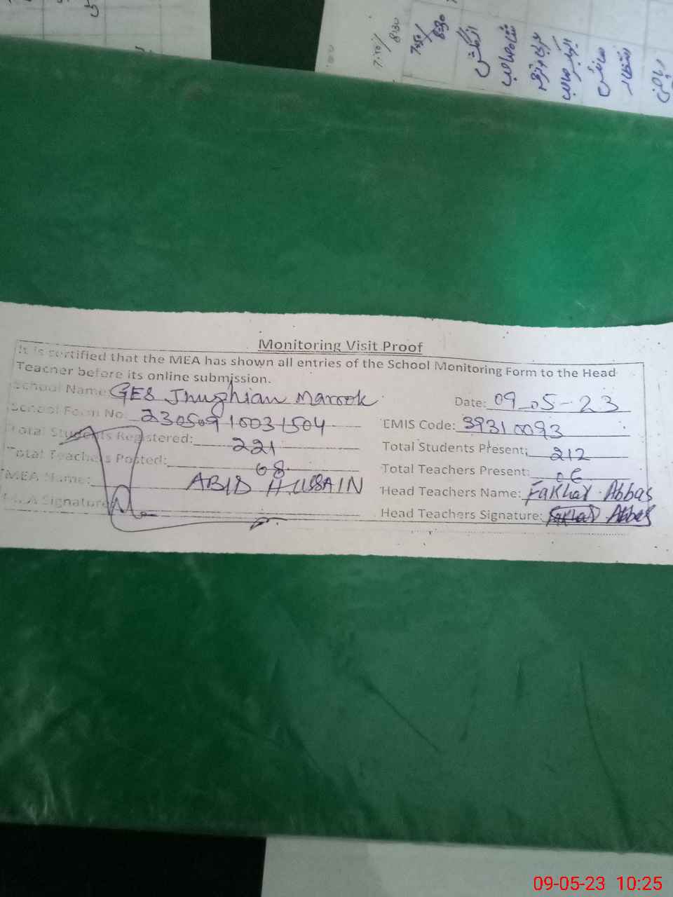| EMIS Code: 39310093 | Name of School: GES JHUGHIAN MAROOK | |||