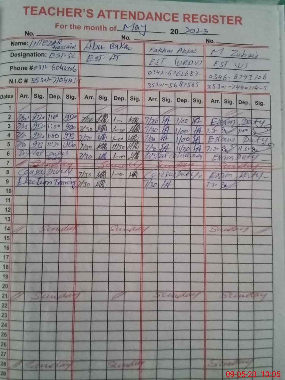 | Name: IN**** HU**** Designation: (School Headmaster's/Headmistress's) S.ESE SCI Phone/Cell Number: 03**** |