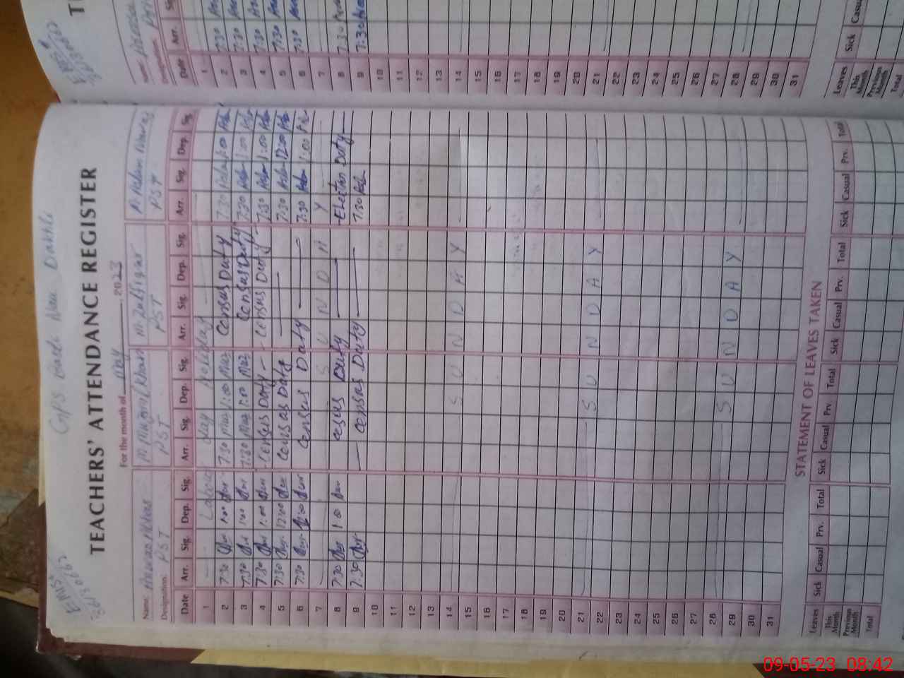 | Remarks (Use Separate Page if Required): Students attendence registers of all classes were not prepared for new classes | |||||