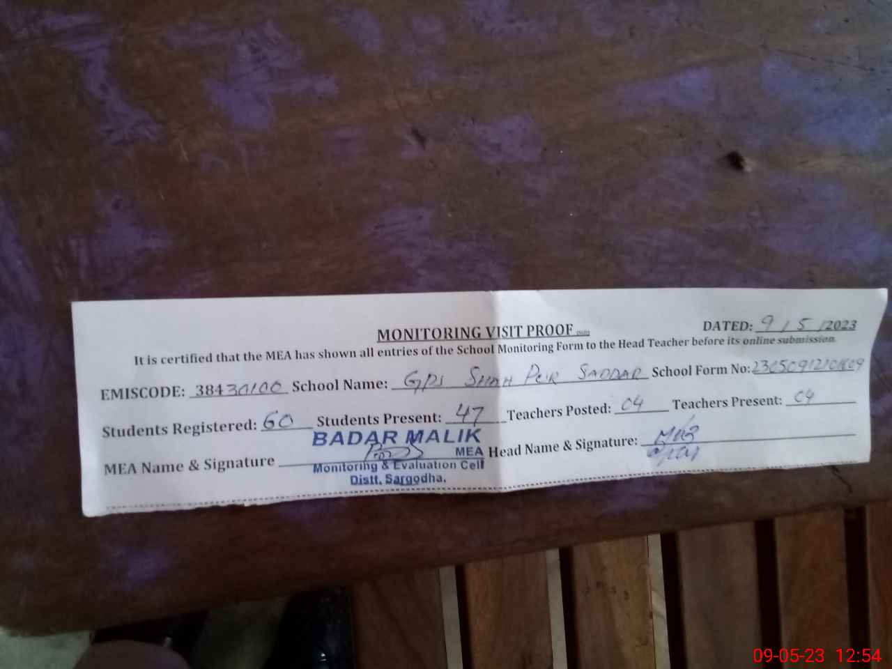 | EMIS Code: 38430100 | Name of School: GPS SHAH PUR SADAR | |||