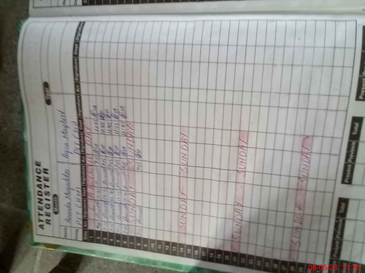 | CNIC | Full Name | Designation | R/C | Absence During Last Calender Month |