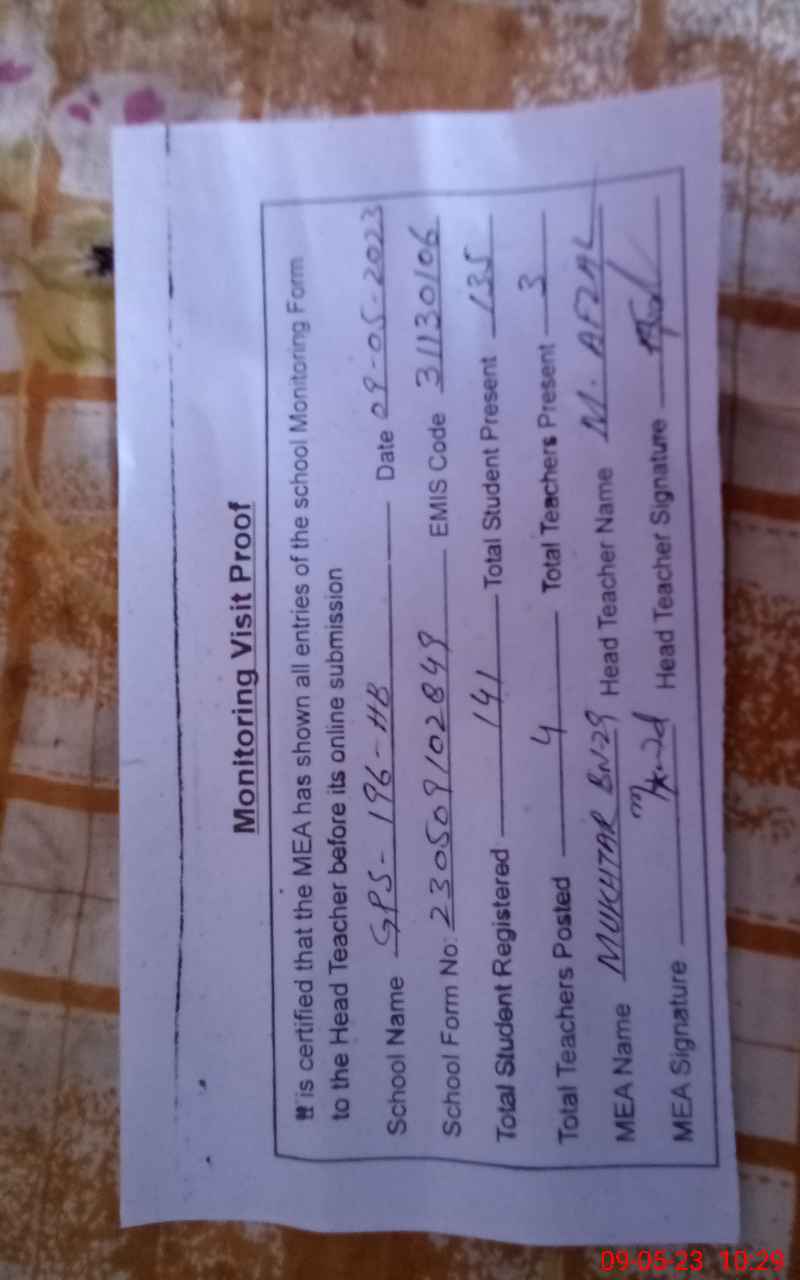 | Attendance Register | Head Teacher | MEA with School | Visit Proof |