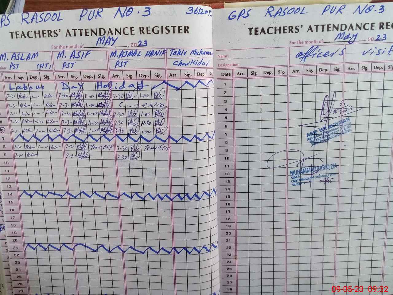 | Monitoring Date: 09-05-2023 | Start Time: 09-05-2023 09:08 AM | End Time: 09-05-2023 09:59 AM | Name of MEA: Mu**** Ta**** Zi**** | |