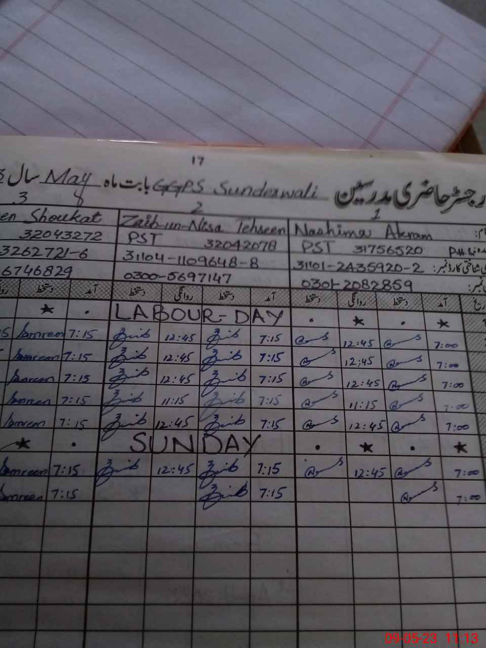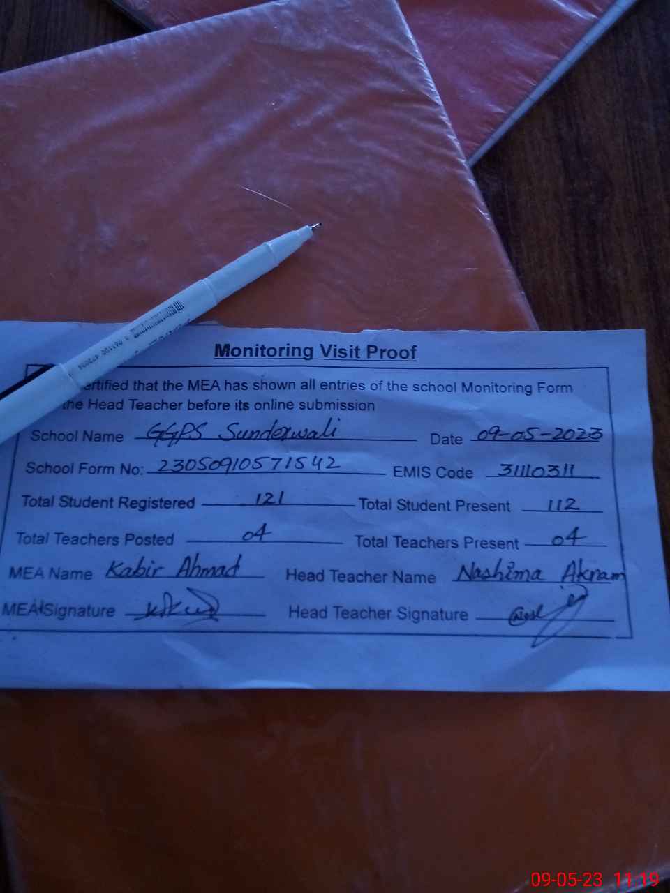 | EMIS Code: 31110311 | Name of School: GGPS SUNDAR WALI | |||