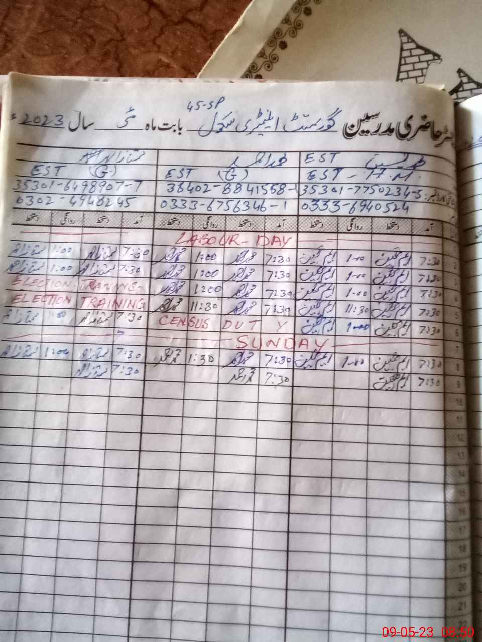 | Name: Mu**** Ya**** Designation: (School Headmaster's/Headmistress's) EST Eng Phone/Cell Number: 03**** |