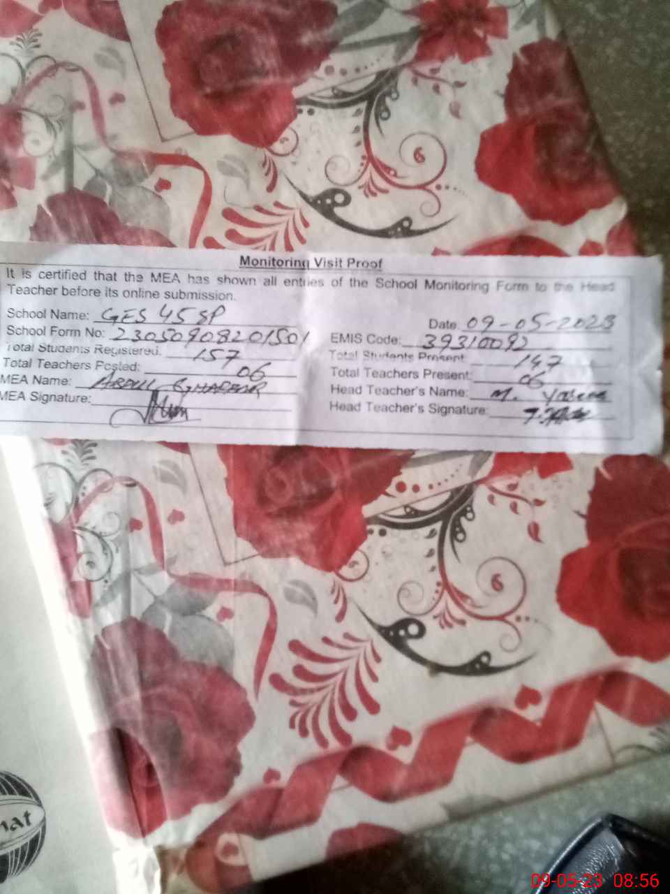 | Attendance Register | Head Teacher | MEA with School | Visit Proof |