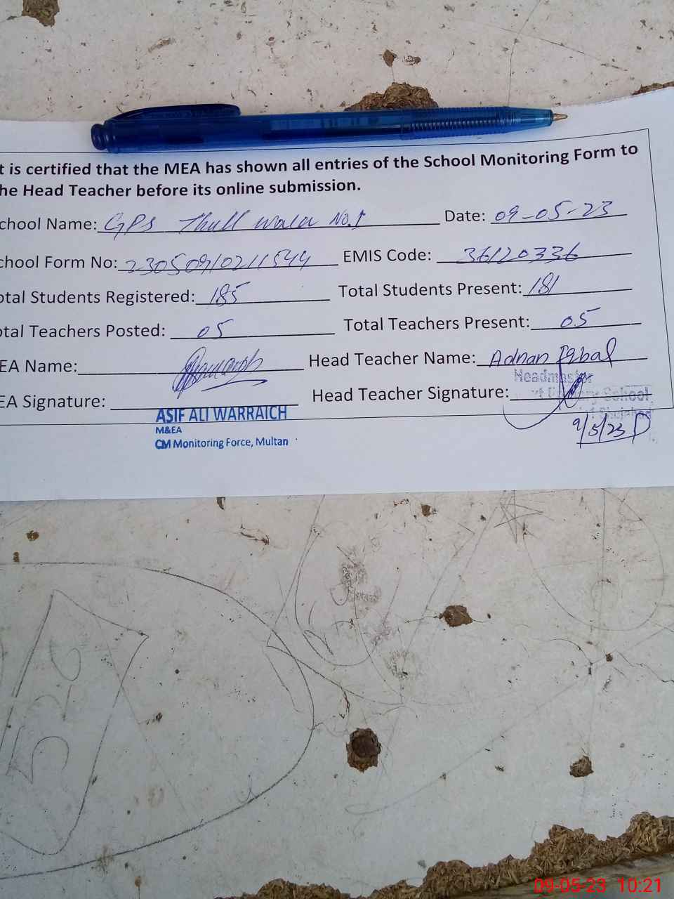 | EMIS Code: 36120336 | Name of School: GPS THULL WALA NO.1 SHUJABAD | |||
