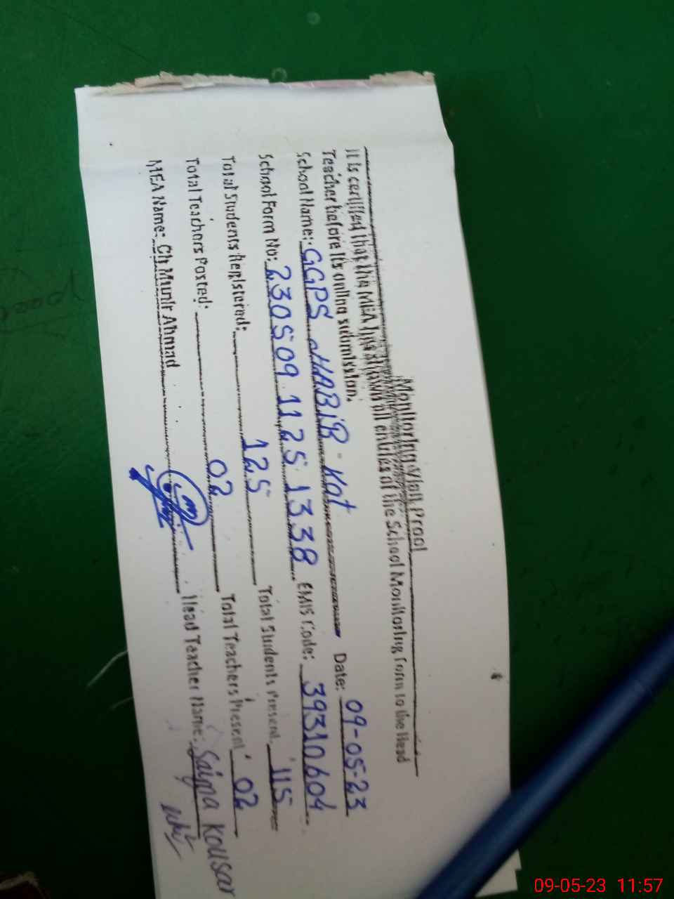 | Certified that this School was Inspected by the Undersigned MEA/DMO Today and the Information Stated Above is as Per Record. | |||||