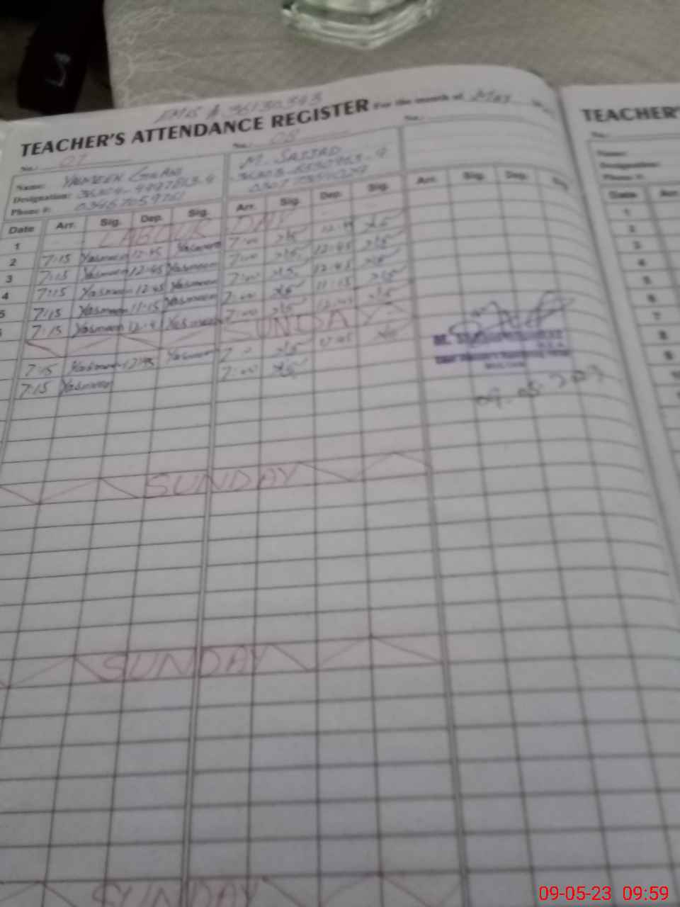 | Name: ZA**** ZA**** Designation: (School Headmaster's/Headmistress's) INCHARGE Phone/Cell Number: 03**** |