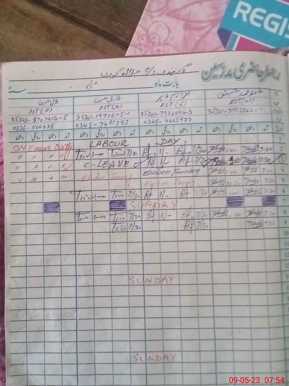 | 35**** | Sa**** Ul**** | ESE | Contract | 0 | 0 | 0 | 0 | 0 | 0 | 0 | 0 | 0 | Exam Duty |