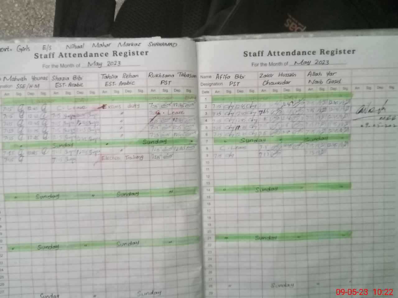 | CNIC | Full Name | Designation | R/C | Absence During Last Calender Month |