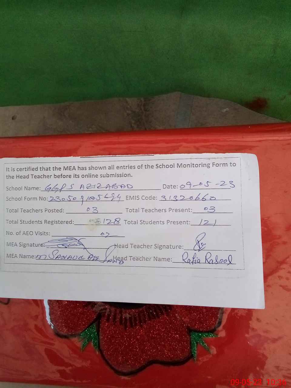 | EMIS Code: 31320660 | Name of School: GGPS AZIZ ABAD | |||