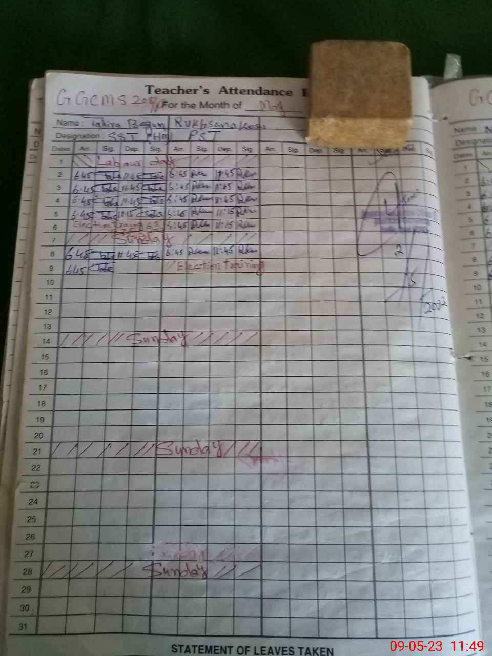 | Name: Ta**** Be**** Designation: (School Headmaster's/Headmistress's) SST Phone/Cell Number: 03**** |
