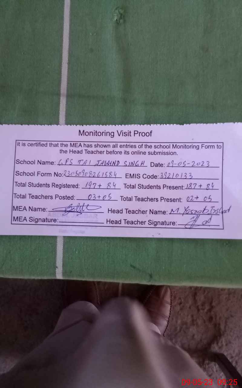 | EMIS Code: 39210133 | Name of School: GPS TAI JAWIND SINGH | |||