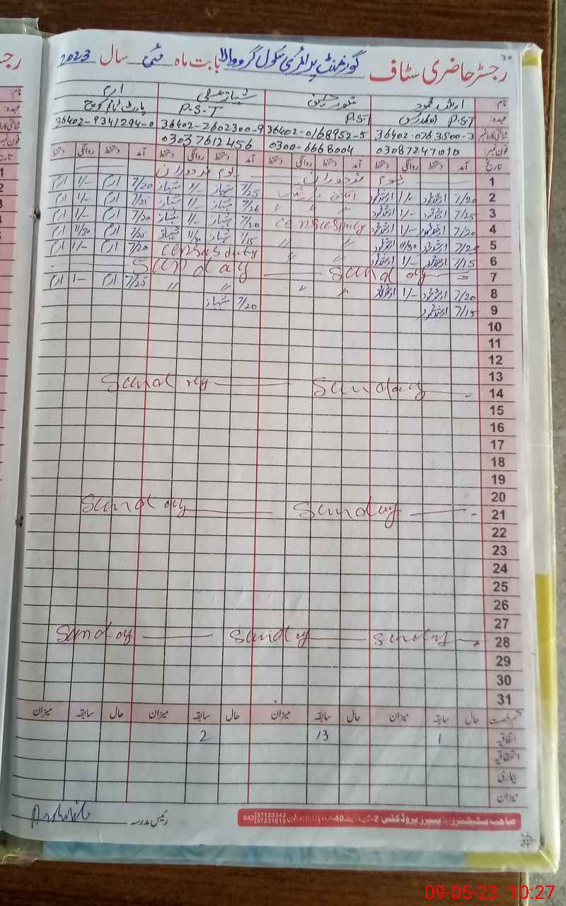 | Name: Mu**** Hu**** Designation: (School Headmaster's/Headmistress's) PST Phone/Cell Number: 03**** |