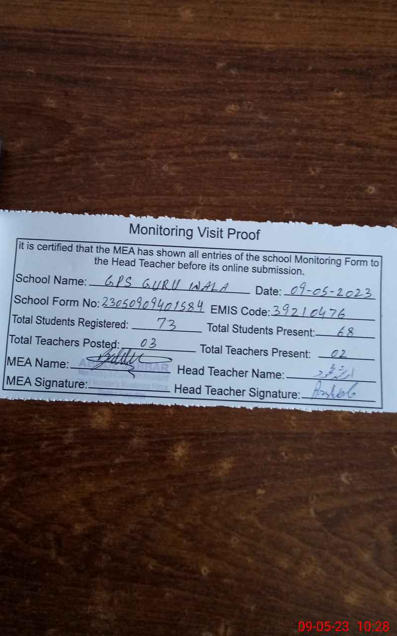 | EMIS Code: 39210476 | Name of School: GPS GURU WALA | |||