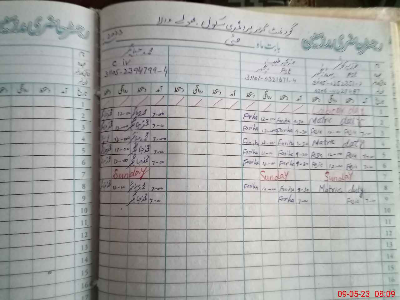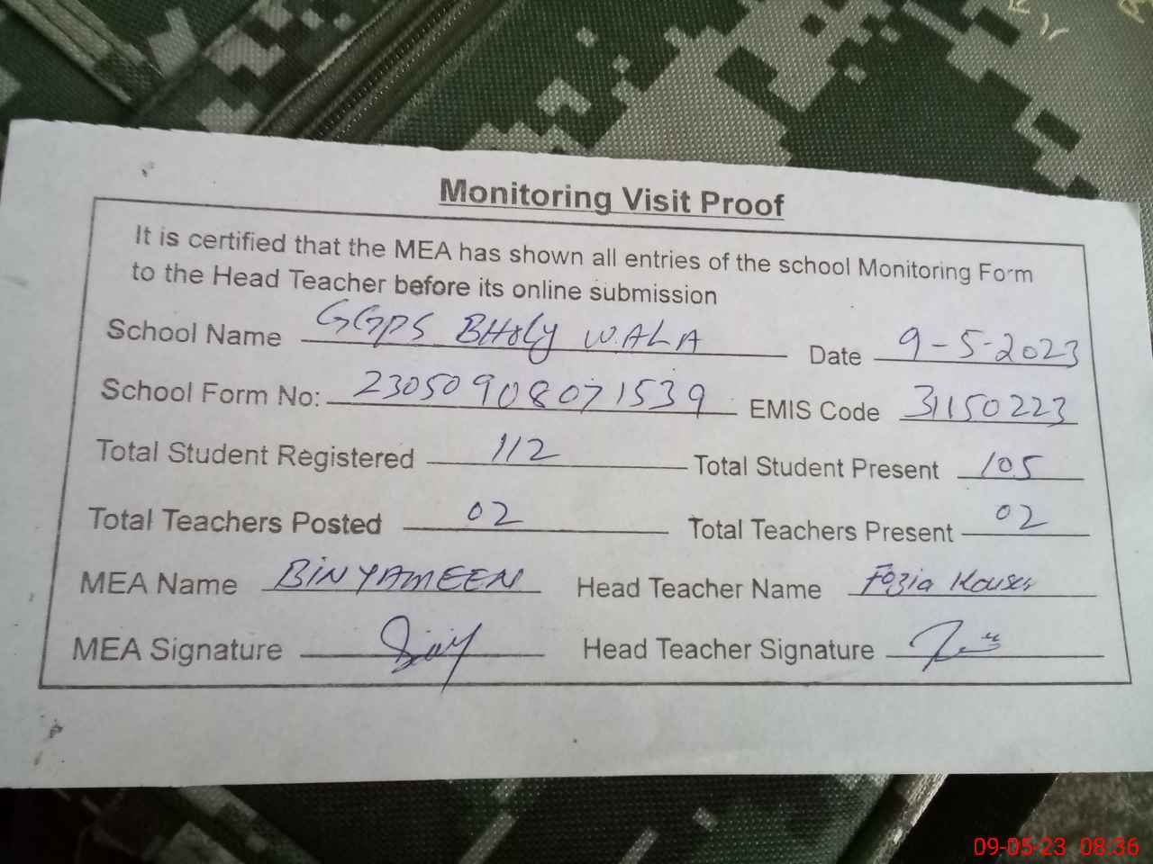 | EMIS Code: 31150223 | Name of School: GGPS BHOLAY WALA | |||