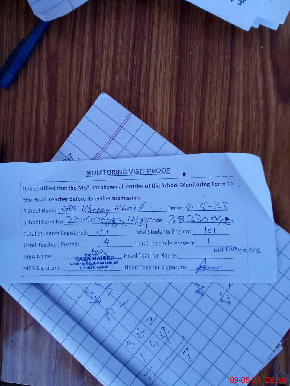 | EMIS Code: 38230040 | Name of School: GPS KHARAY KHAIL | |||