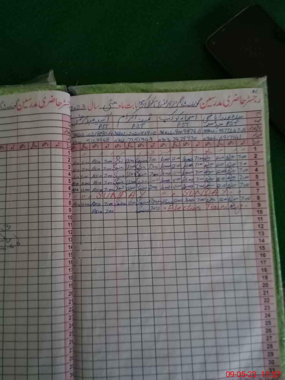 | Name: Az**** Ha**** Designation: (School Headmaster's/Headmistress's) PST Phone/Cell Number: 03**** |