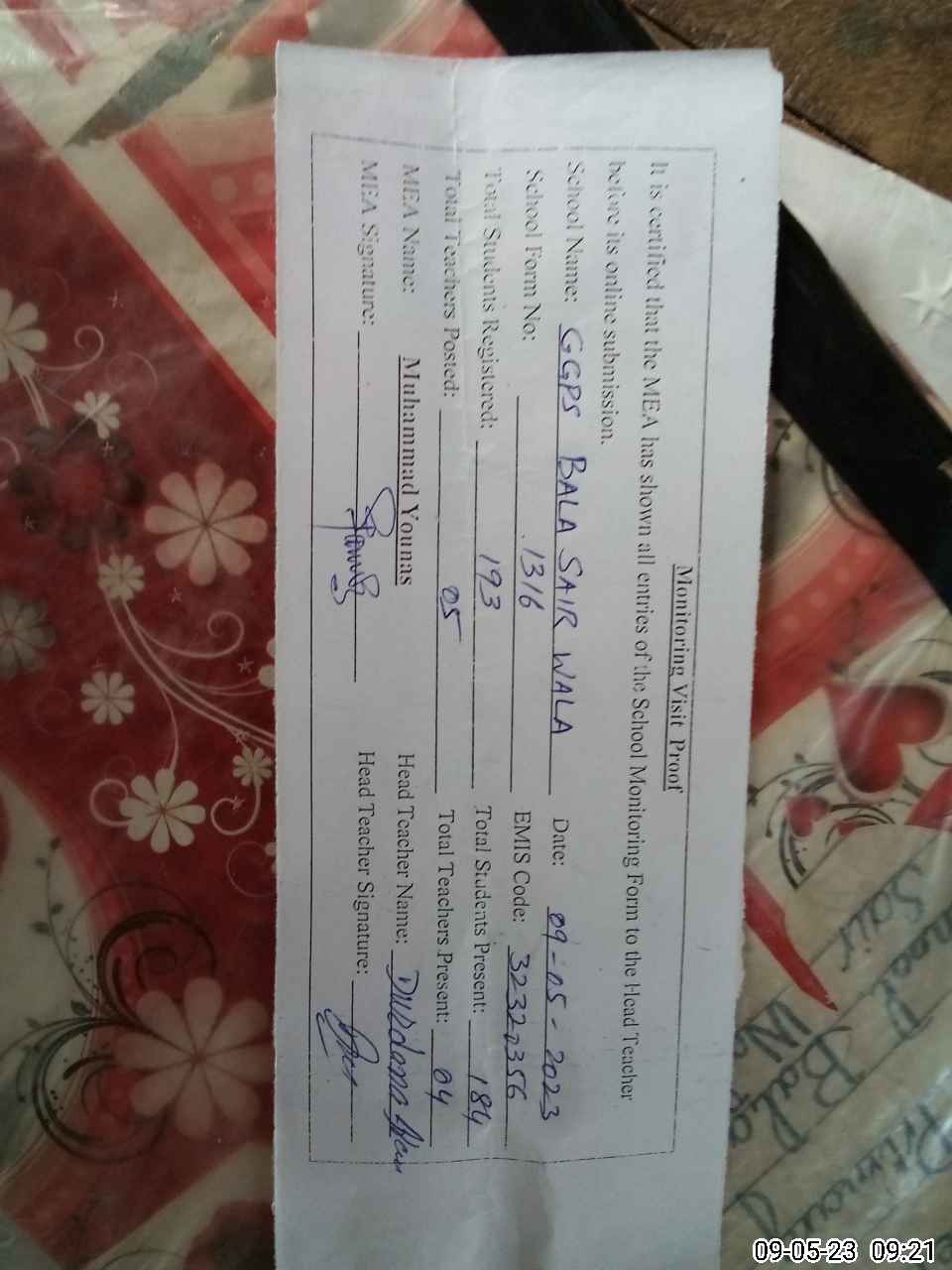 | EMIS Code: 32320356 | Name of School: GGPS BALA SAIR WALA | |||