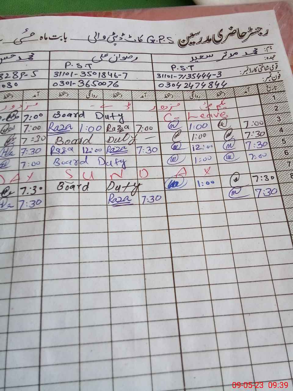 | CNIC | Full Name | Designation | R/C | Absence During Last Calender Month |