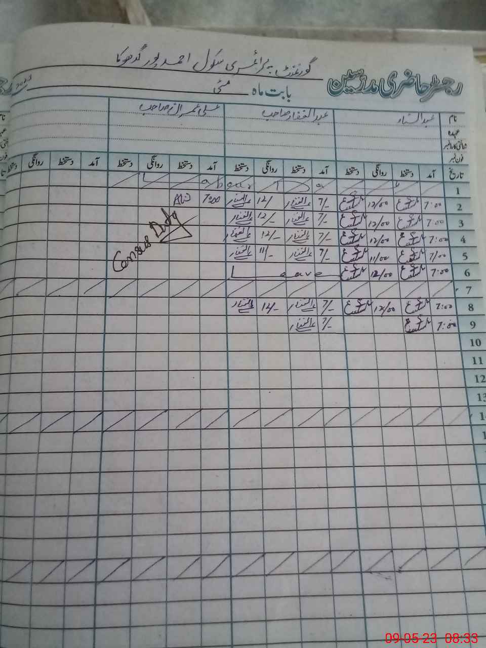 | CNIC | Full Name | Designation | R/C | Absence During Last Calender Month |