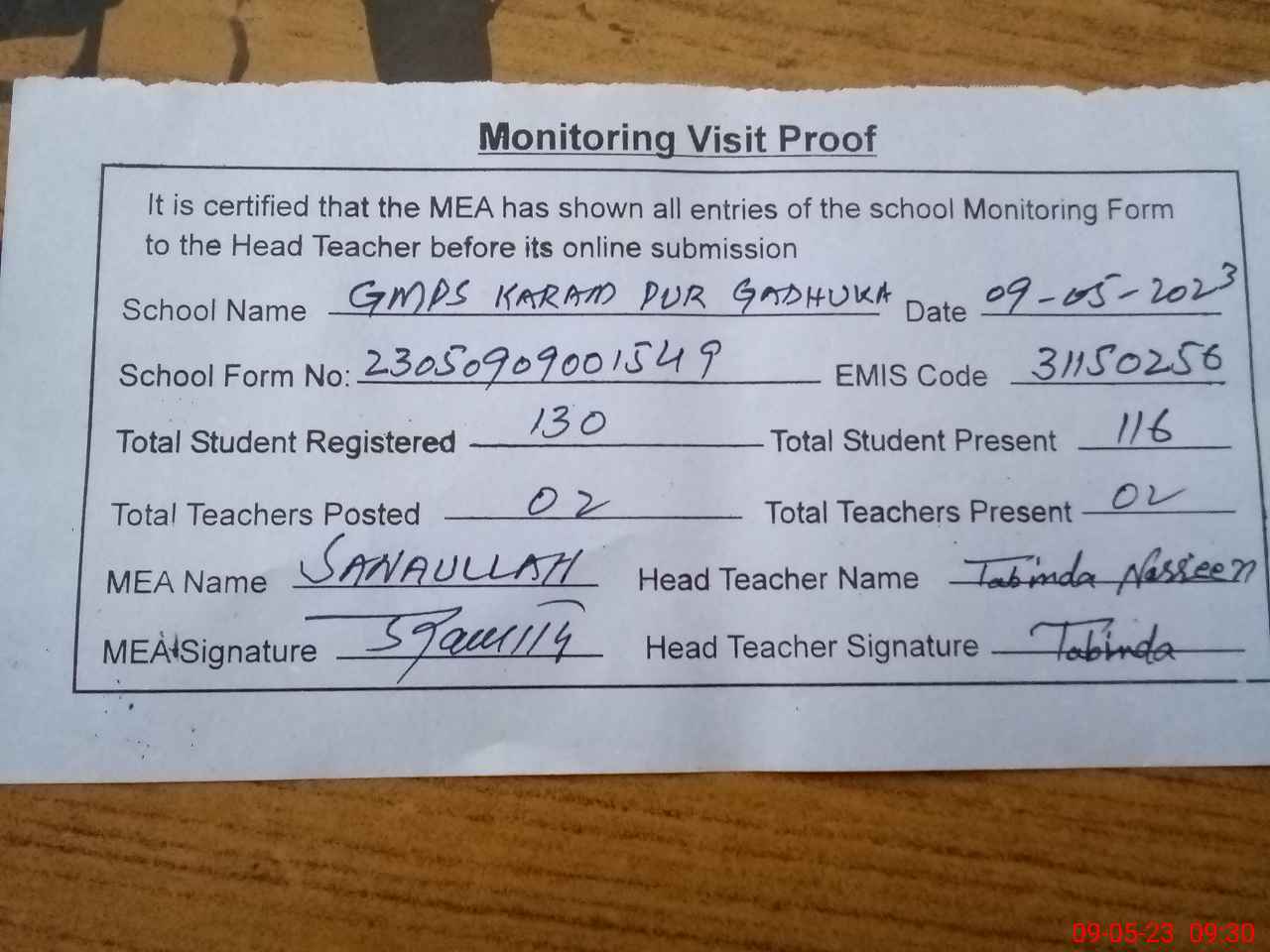 | EMIS Code: 31150256 | Name of School: GMPS KARAM PUR GADHOKA | |||