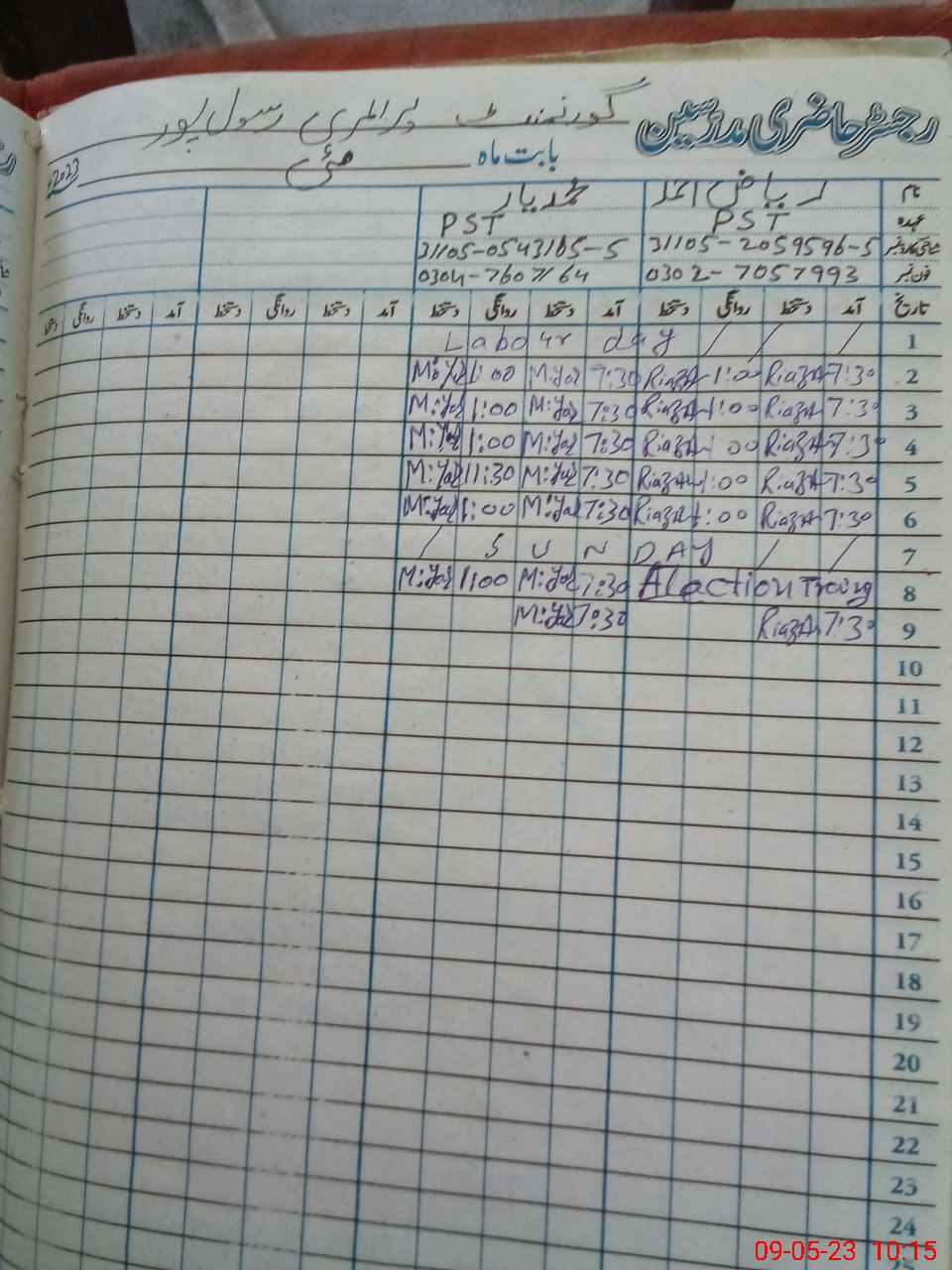 | Name: RI**** AH**** Designation: (School Headmaster's/Headmistress's) ESE SCI Phone/Cell Number: 03**** |