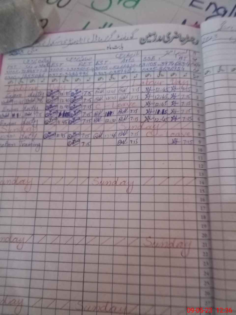 | Leave | Duty | Absent | Maternity | Medical | Ex- Pak |