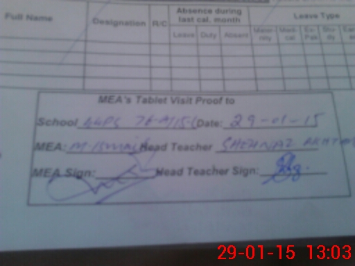 | Attendance Register | Head Teacher | MEA with School | Visit Proof |