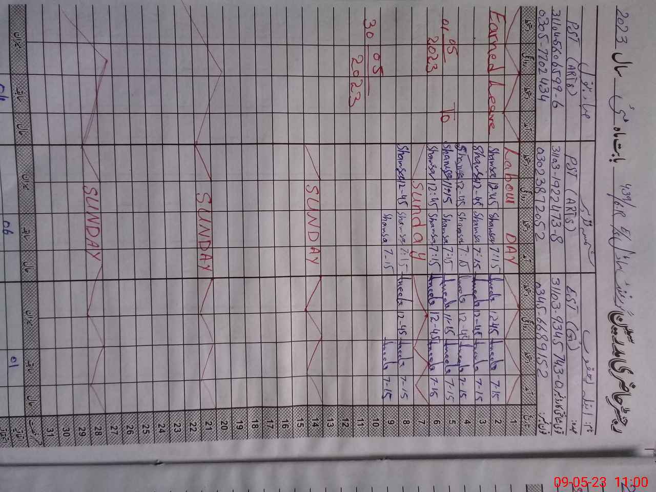 | CNIC | Full Name | Designation | R/C | Absence During Last Calender Month |